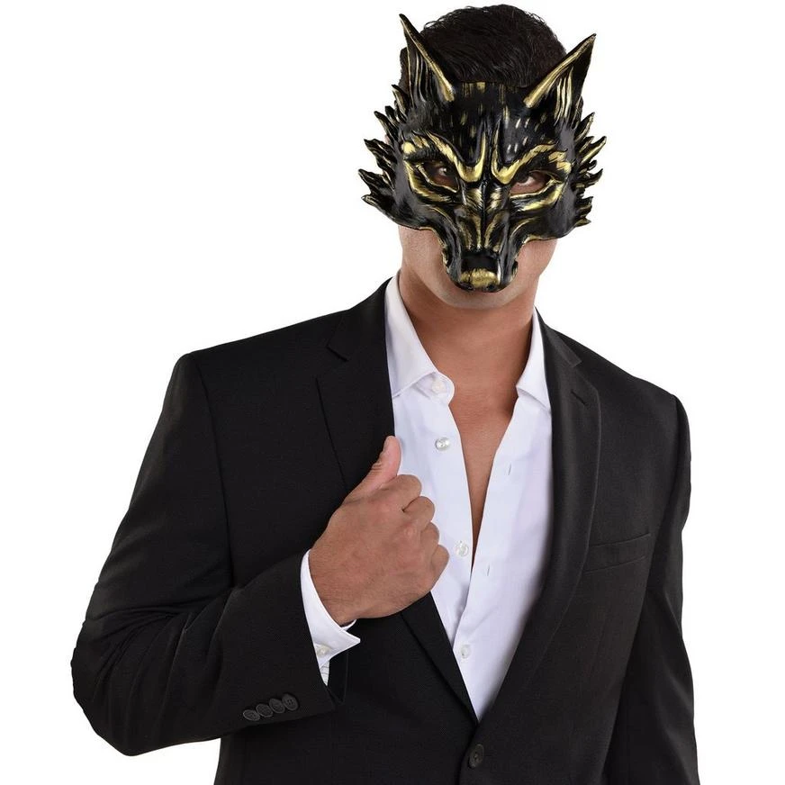 Adult Black & Metallic Gold Wolf Foam Half Mask product details: