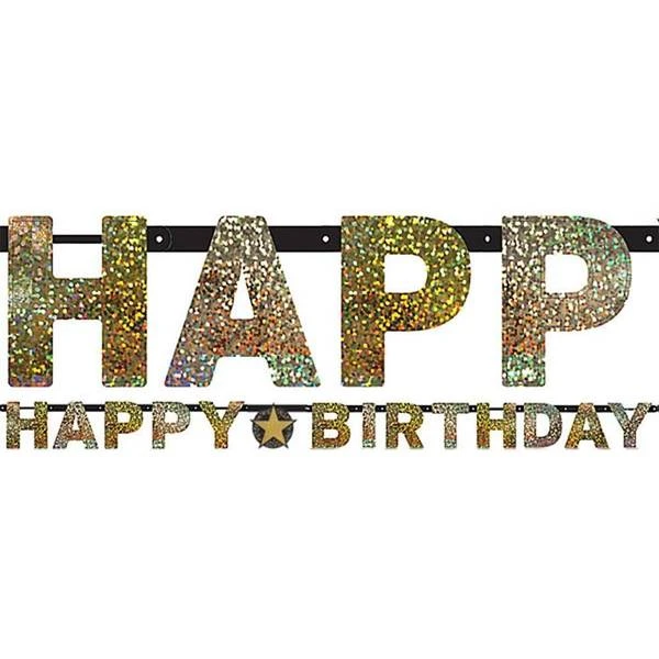 Amscan Black & Gold Metallic Happy Birthday Hanging Party Letter Banner 2.13m – Lowest prices on PriceRunner ✓ Compare prices from 2 stores!