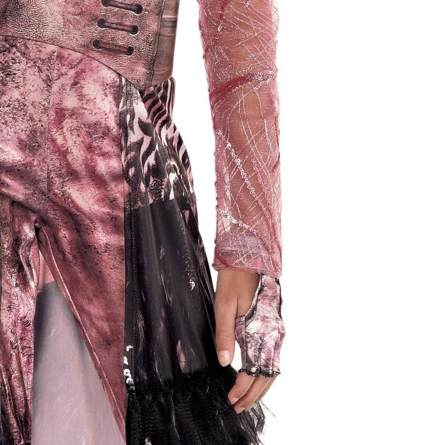From the hit movie series Descendants comes this Audrey costume for kids! Your fashionista can look like the most popular princess in Auradon in this pink jumpsuit with a black peplum attachment and sheer panels on the chest and long sleeves. Use the belt to cinch at the waist and accessorize with the matching fingerless glove.