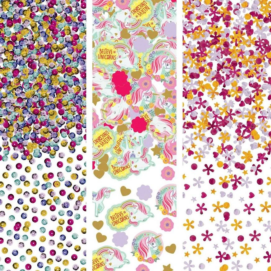 Sprinkle the tables at your little one’s unicorn party with some magic using Magical Unicorn Confetti! Cardstock and foil cutouts of unicorns and other colorful designs will add some decorative flair to your child’s unicorn birthday party. Alternatively, you can sprinkle some of this unicorn confetti into the envelopes for the party invitations. Make your child’s unicorn party shine with this confetti!