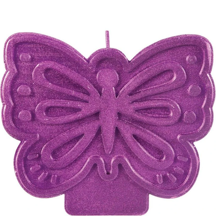 Top off their floral birthday cake with a butterfly candle! The wax cake topper is metallic purple with a subtle butterfly textured print. Add some fun and color to their birthday dessert with this unique candle.