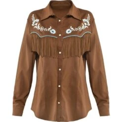AMSCAN Brown Western Cowgirl Button Up Fringe Shirt For Adults